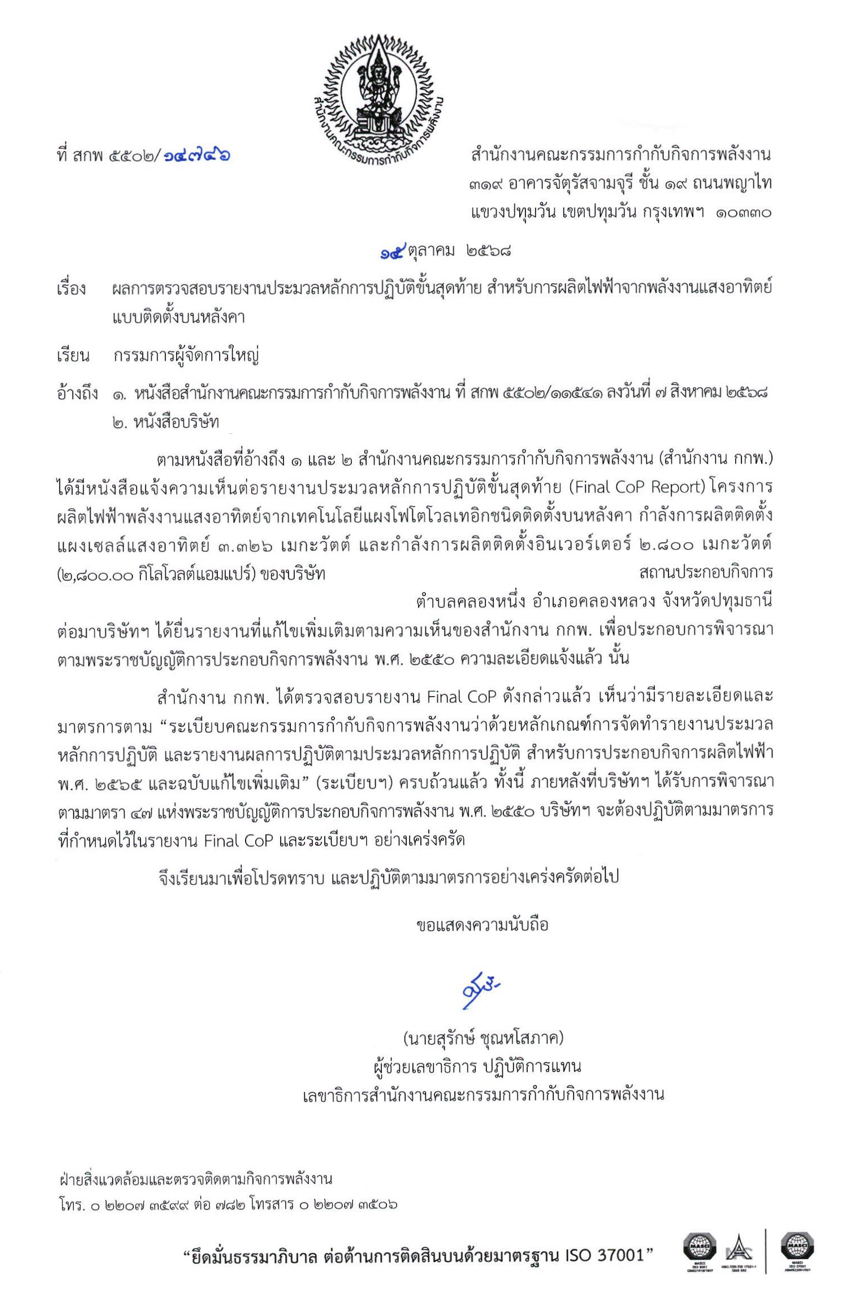 - รายงานประมวลหลักการปฏิบัติ (Code of Practice) เสนอ กกพ.