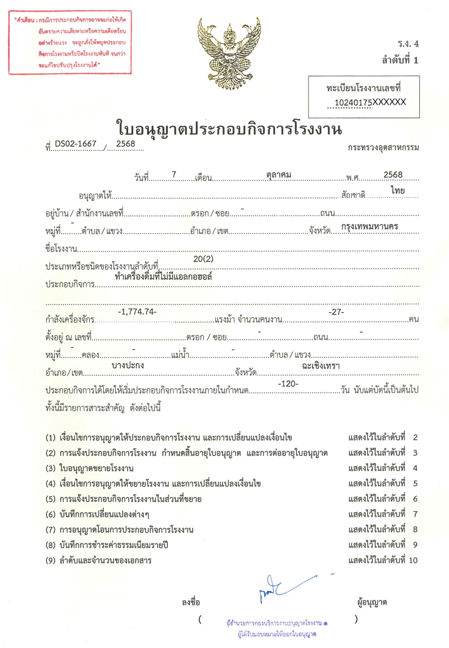 - การขออนุญาตประกอบกิจการโรงงาน/ขยายโรงงาน (รง.4)